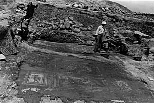 In preparation for Antioch: The Lost Ancient City, many of the mosaics included in the show received conservation treatment. During the 1930s excavation, concrete backings with iron reinforcing rods were applied to the mosaics and areas of loss were also filled with concrete that, in many places, extended over original mosaic surface. When the mosaics arrived in American and European collections, further restorations were undertaken. In some cases, concrete was removed and the losses filled with ancient or modern replacement stone tesserae. In other instances, painted restorations, often imitating tesserae, were employed either over plaster fills or by painting directly on the 1930s concrete. Various varnishes were also applied in an effort to saturate the mosaic colors.